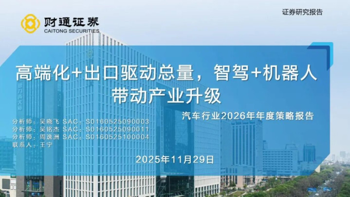 盈透科技配资官网 [报告]汽车行业2026年年度策略: 高端化+出口驱动总量, 智驾+机器人带动产业升级(附32页PDF文件下载) 2026年 来源:真实配资平台APP下载 网站:信钰证券 日期:2025-12-29 11:41:29 查看:171