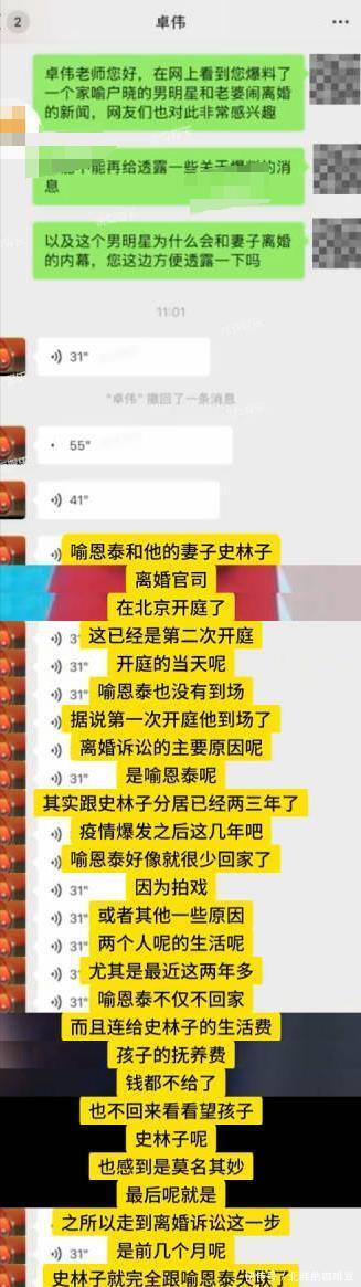 在阅读此文之前,辛苦您点击一下“关注”,既方便您进行讨论和分享,又能给您带来不一样的参与感,感谢您的支持! 爱吃叉骨 编辑丨 呦呦鹿鸣 没想到关于喻恩泰夫妻反目成仇的事情如今反转了,前脚大家还骂“秀才”,后脚就被曝出的史女士的露骨聊天震惊了,都不是简单的人!